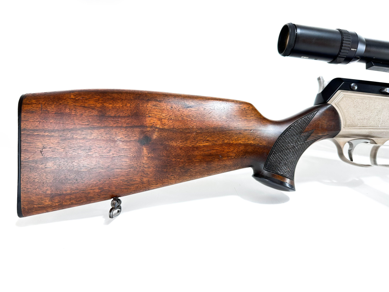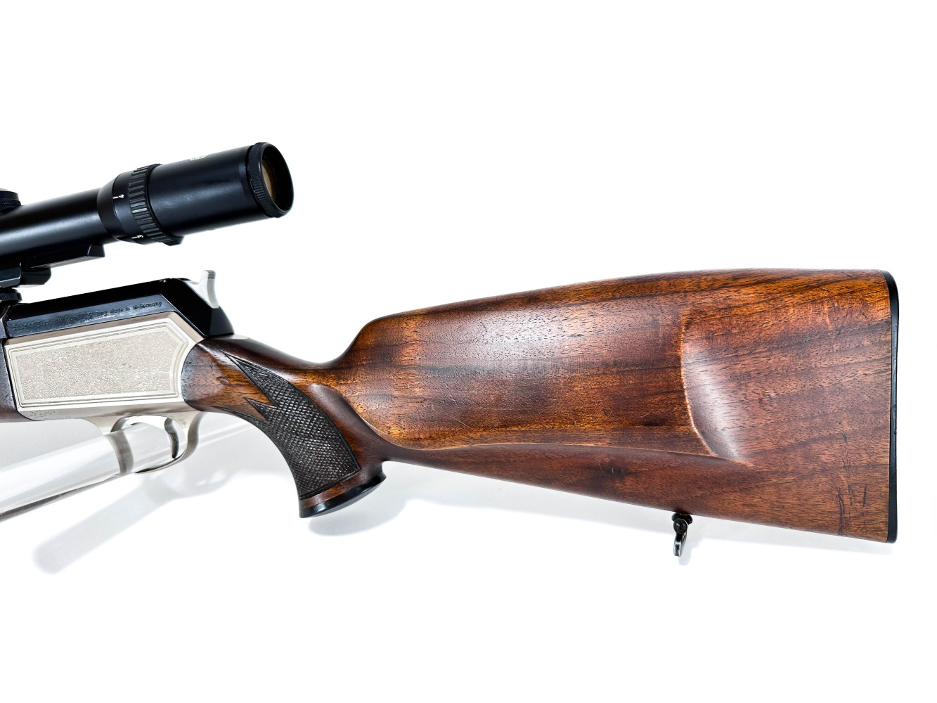 Nabízená opakovací kulovnice Blaser SR 830 je v ráži 30-06 Springfield, je osazena naháňkovou optikou Schmidt Bender 1,25-4×20 na originální montáži – optika je v perfektním stavu. Tato kulovnice Blaser SR 850 je v provedení s lícnicí, na tmavé pažbě je montována původní gumová botka. Hlaveň je opatřena závitem. Nabízená opakovací kulovnice Blaser SR 850 je v nošeném, avšak velmi zachovalém stavu. Nabízený set je ideálním naháňkovým řešením pro náročnější lovce.