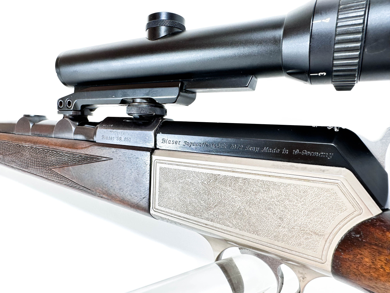 Blaser model SR 850 s válcovým závěrem se třemi uzamykacími ozuby byl poprvé uveden na trh v roce 1988. Napnutí bicího mechanismu zbraně probíhá zatlačením systému umístěného na zadní straně , samotným uzavřením závěrového mechanismu tedy nedojde k napnutí bicího mechanismu – toto řešení tak vede ke zvýšení bezpečnosti při manipulaci se zbraní. Odpor spouště je možno regulovat pomocí stavítka umístěného v šachtě schránky v kombinaci s konstrukcí, kdy hlaveň zbraně není pevně upevněna k předpažbí, tak má tento model zbraně velký potenciál přesnosti střelby.